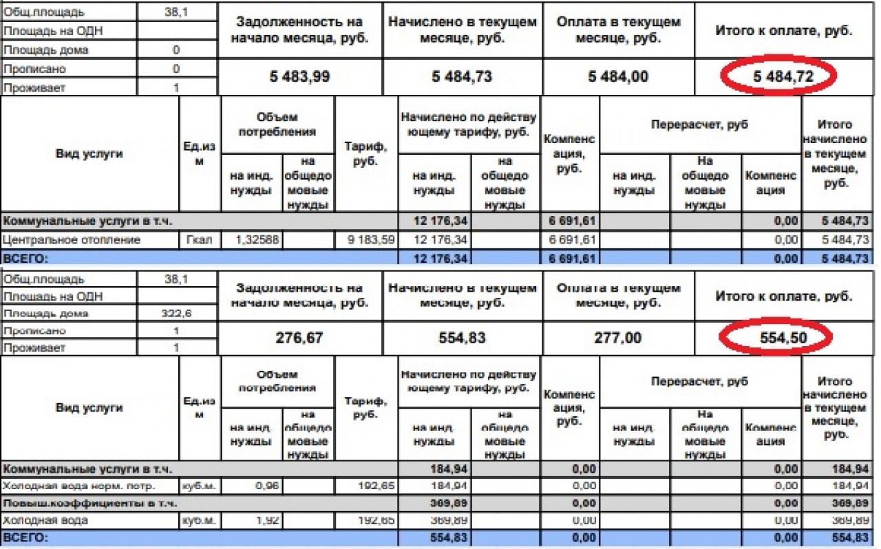Приведу простой пример на квартирах моих знакомых. Обычный многоквартирный 2-этажный дом. Внизу на 1 этаже проживает в квартире (площадь 38,1) пенсионерка. У нее по новым тарифам плата за воду составляет 554рубля вместо 277. За центральное отопление плата 5484рубля. Итого: за воду и отопление пенсионерка теперь платит 6038рублей.