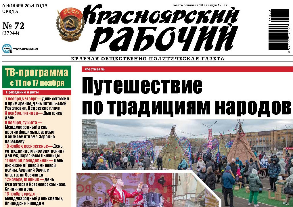 Читайте в газете "Красноярский рабочий" в среду, 6 ноября 2024 года