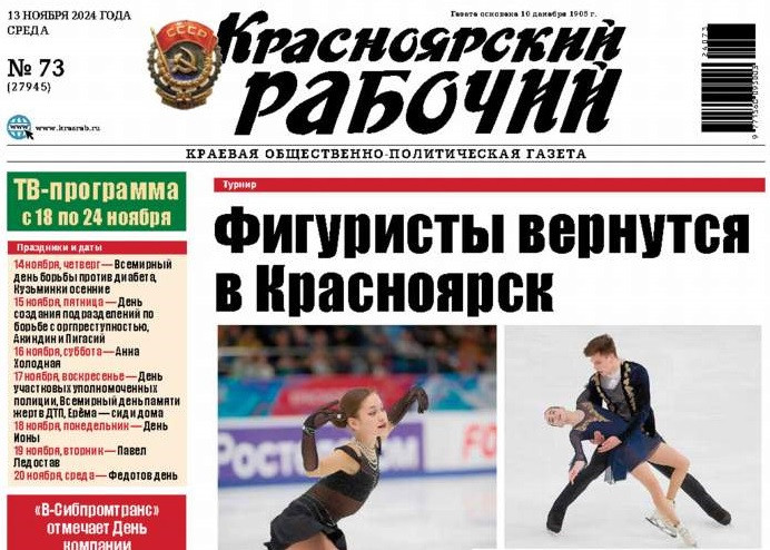 Читайте в газете "Красноярский рабочий" в среду, 20 ноября 2024 года