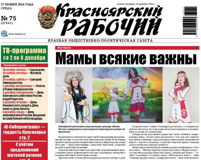 Читайте в газете "Красноярский рабочий" в среду, 27 ноября 2024 года