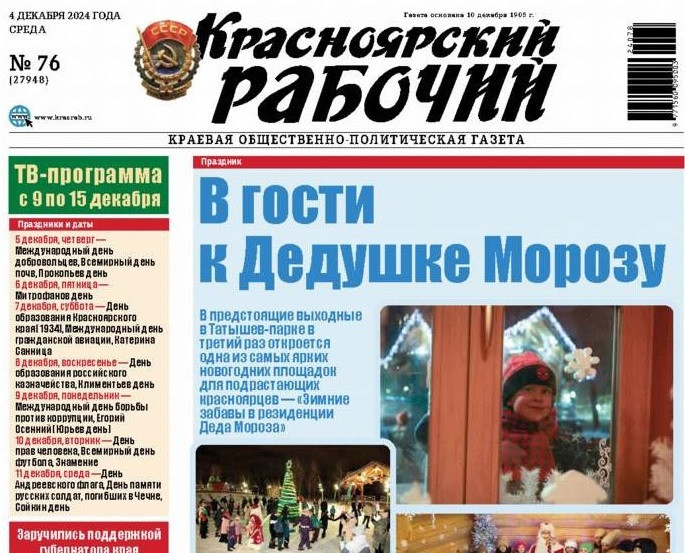 Читайте в газете "Красноярский рабочий" в среду, 4 декабря 2024 года