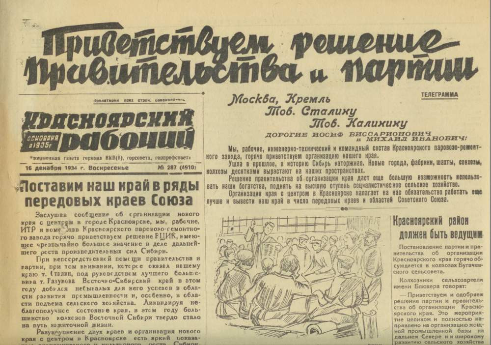 "Красноярский рабочий" в декабре 1934 года: "Ещё выше поднять энтузиазм масс!"