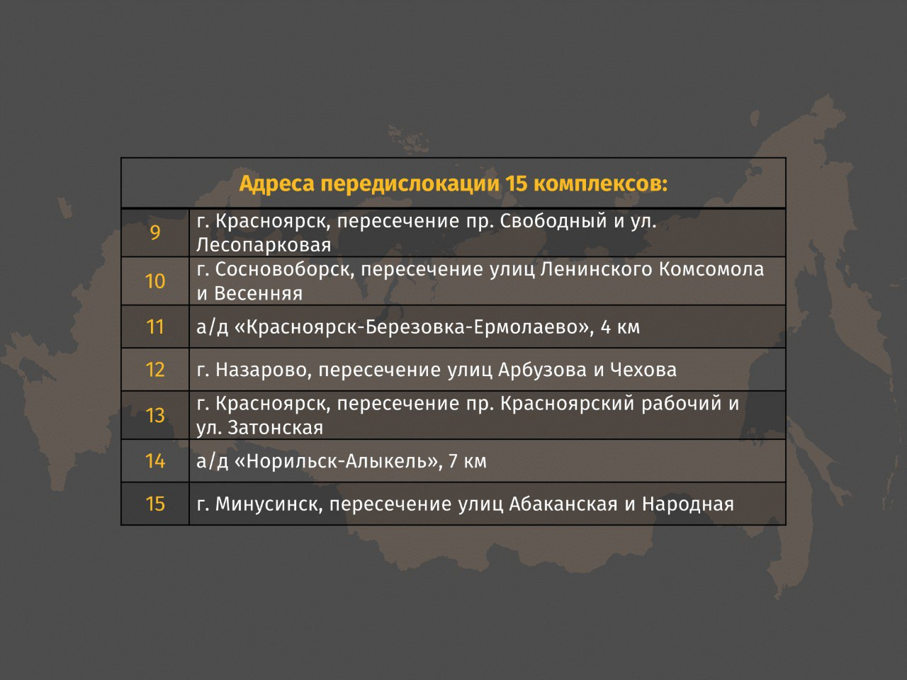 Кроме того, специалистами в текущем году будет выполнена передислокация 15-ти существующих стационарных комплексов на новые участки.