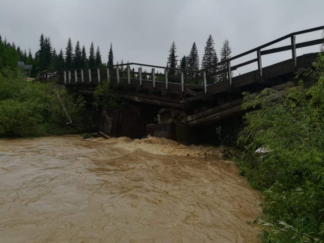В Курагинском районе на реке Сейба подмыло опоры моста