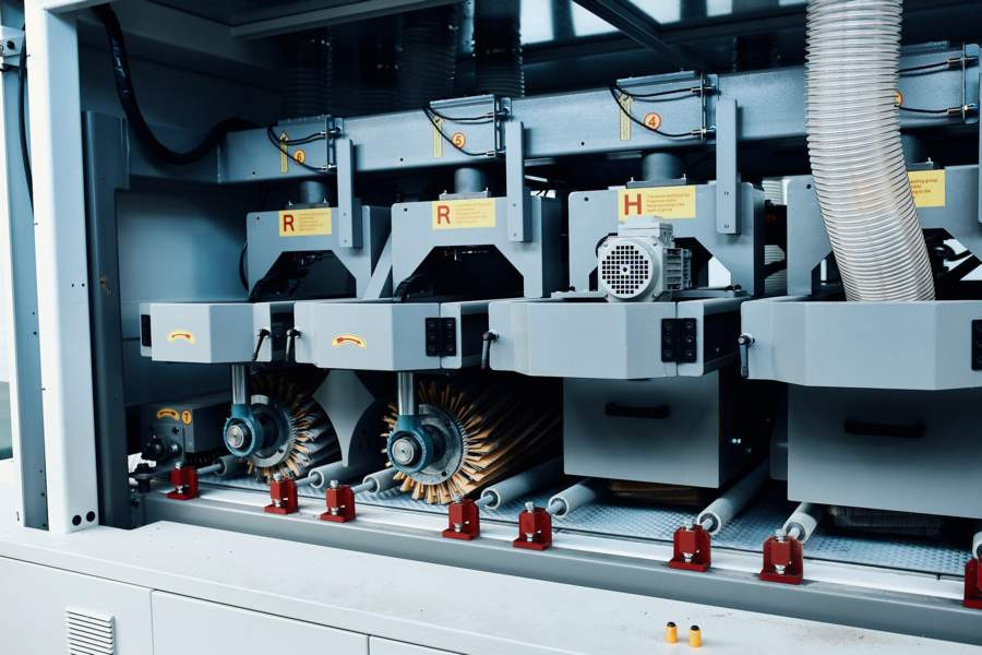 Потом на специальном оборудовании эти заготовки, также в автоматическом режиме, шлифуются, на другом оборудовании обеспечиваются необходимыми отверстиями разного диаметра, на третьем их торцы фрезеруются, шлифуются, далее наносится клей, под давлением специальные прессы приклеивают ровным слоем к ним термопластический материал.