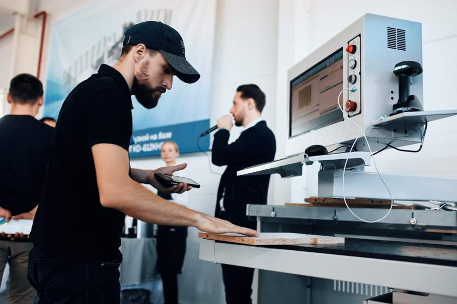 Впрочем, ленточку перед открытием никто не разрезал. Выступил с приветственным словом председатель Гильдии мебельщиков Красноярского края, вдохновитель группы компаний "Мебелькомплект" Юрий Макаренков, также сделали краткие доклады представители компании LIGA по проблемам мебельной отрасли, а дальше начался трёхдневный практический семинар под названием "Мебельное производство. Красноярск-2023".