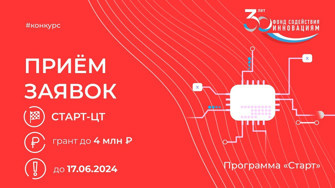 Заявки принимаются до 17 июня. Участвовать в конкурсе могут инноваторы и разработчики. Допускаются как физические лица, так и организации - субъекты малого предпринимательства, обладающие статусом налогового резидента РФ. Максимальный размер гранта - 4 миллиона рублей.