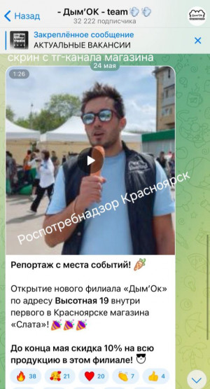 Репортаж с открытия нового филиала «Дым’ОК» в первом красноярском магазине «Слата», опубликованный в социальных сетях, привлёк внимание не только целевой аудитории, но и специалистов управления Роспотребнадзора.