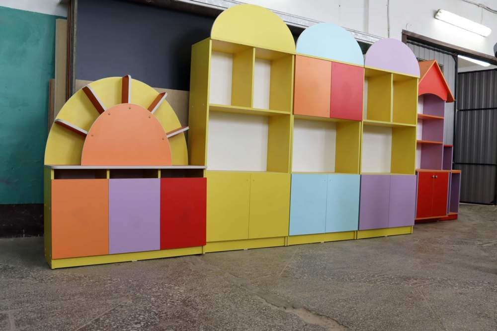 Трудовые мастерские ЛИУ № 34 в рамках сотрудничества с администрацией Алтайского района изготовили мебель для детских садов. С использованием многообразия цветов, форм и элементов украшения в красочном дизайне сделаны кроватки, столы, стеллажи, мебель для игровых и развивающих зон, кабинки для раздевалок и многое другое.