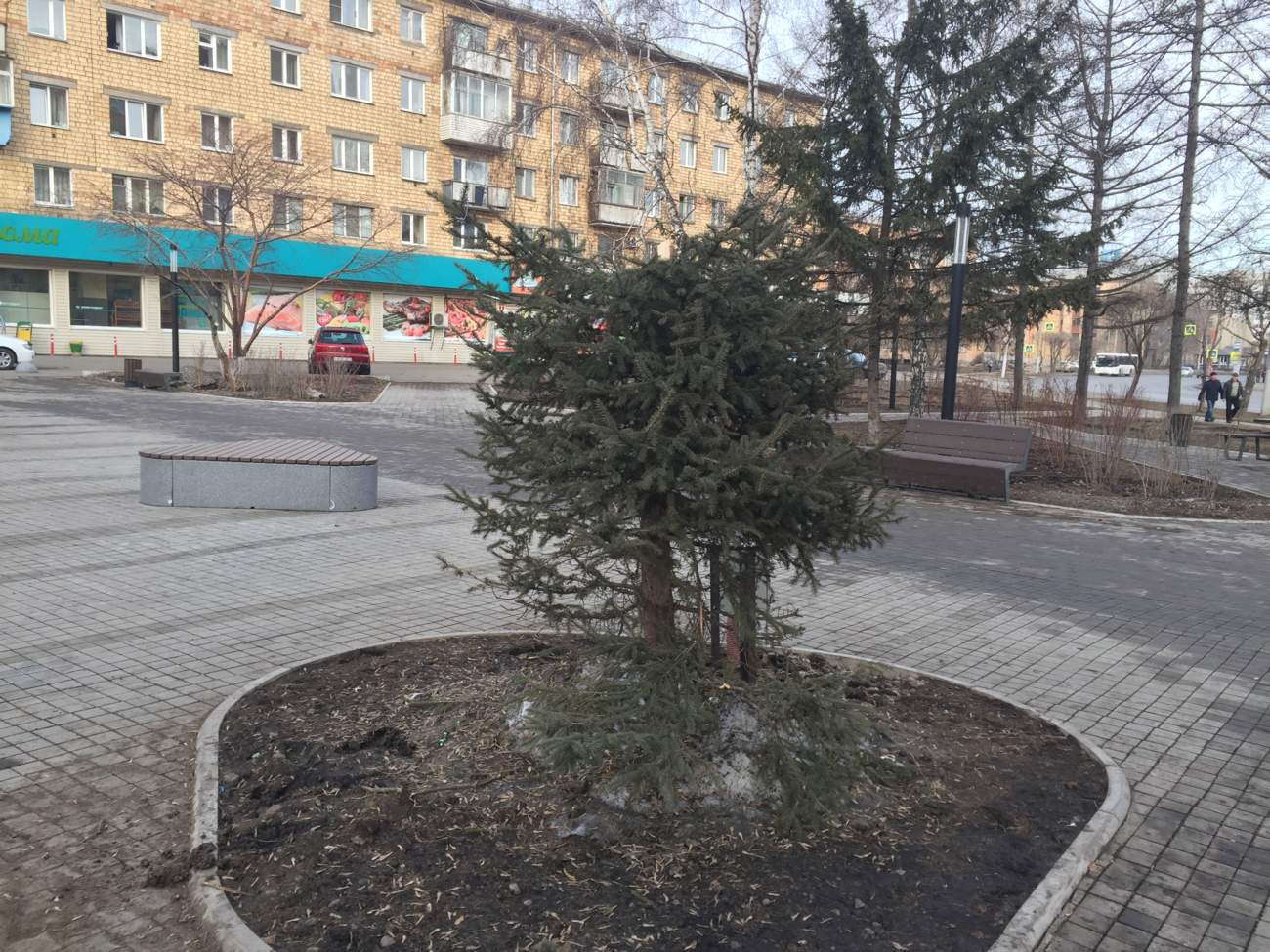 В сквере "Уют" на красноярской улице Железнодорожников срубили живую многометровую ель, которая высадили осенью прошлого года, придав ей статус новогодней.