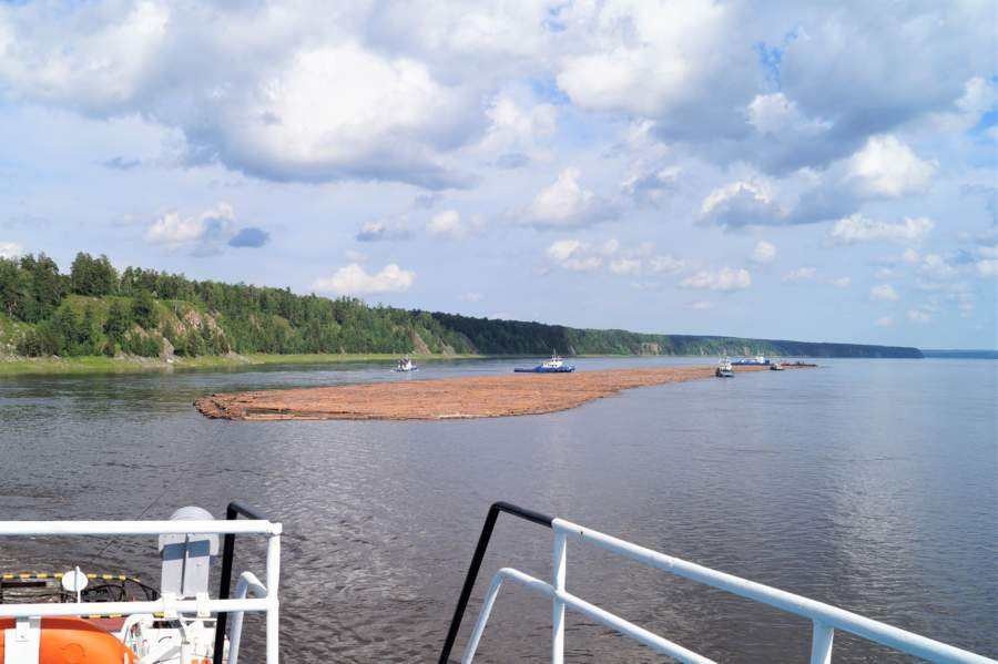 28 июля в Дудинку прибыл плотокараван круглого леса. Лесоплот объемом 26,4 тысячи кубометров вышел из устья Ангары 16 июля. Его ширина достигала 70 метров, длина – 800 метров, осадка – 0,9 метра.