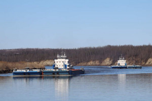 Сейчас на Большой Хете продолжается навигация: доставка грузов ведётся мелкосидящим флотом.