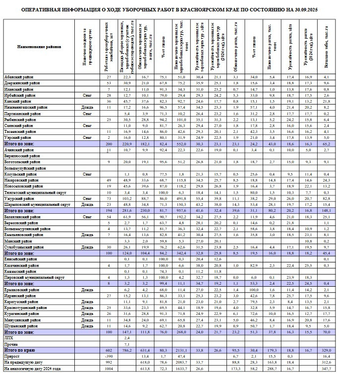 В Красноярском крае намолочено более 2 миллионов тонн зерна