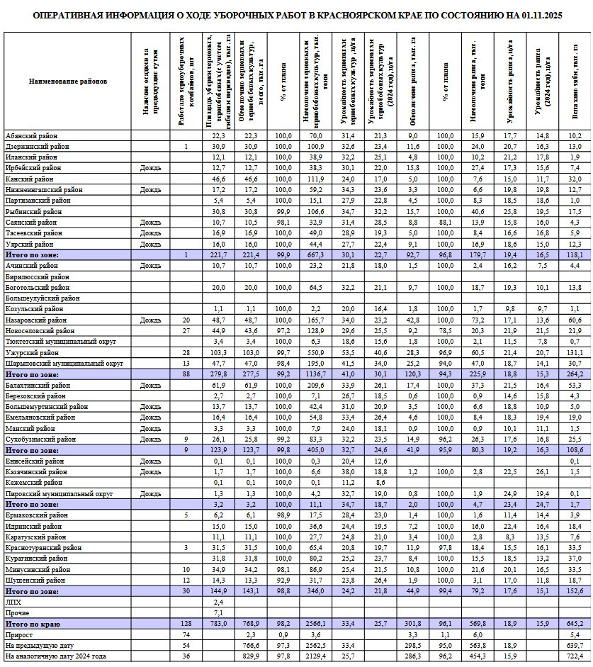 В Красноярском крае подведены предварительные итоги уборочной кампании