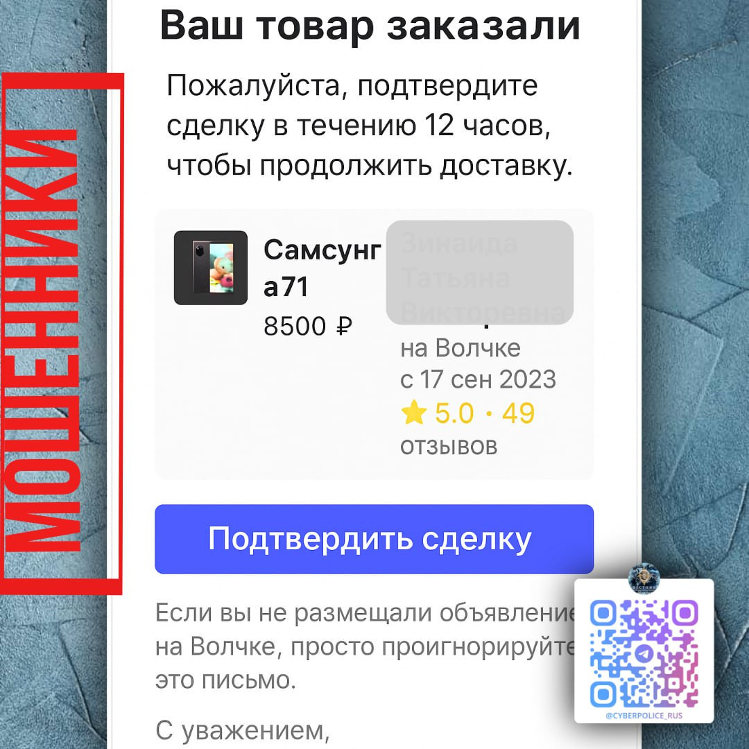 После обсуждения предмета сделки «покупатель» заявляет, что уже оплатил товар через площадку и продавцу нужно просто «подтвердить получение средств».