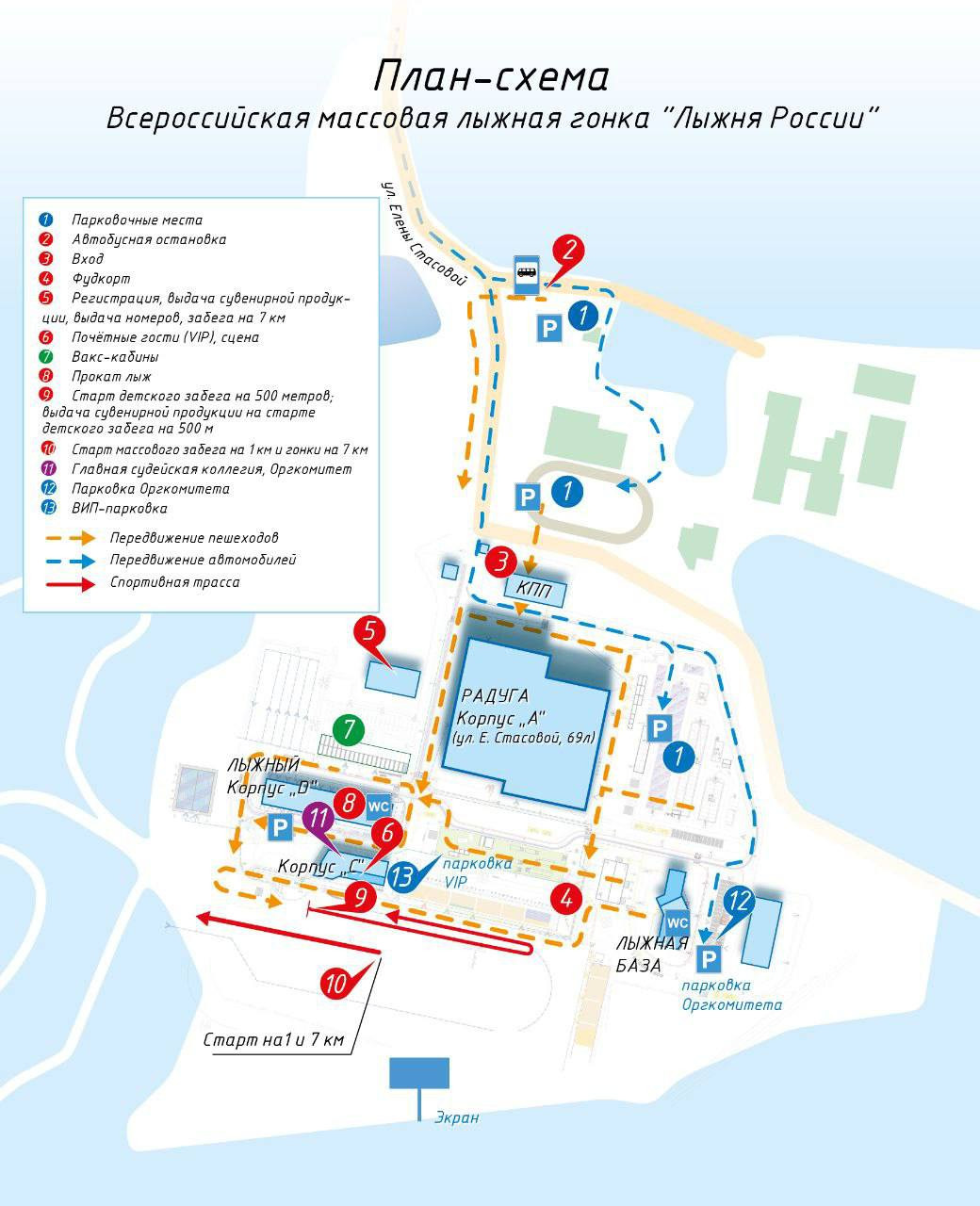 Появилась схема территории комплекса «Радуга» в день проведения «Лыжни России»