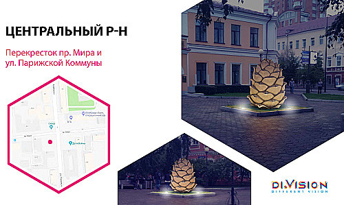 "В проекте задействованы все семь районов города - в каждом районе будет установлена своя шишка. Места определялись с учётом наибольшей посещаемости и наилучшего визуального восприятия арт-объекта в комплексе с участком окружающей городской среды. Высота шишки - 2,3 метра, материал - бетон, цвет - индивидуальный. Колористическое решение утверждено коллегиально на заседании архитектурно-планировочной комиссии управления архитектуры", - рассказала главный художник города Наталья Прибыльнова.