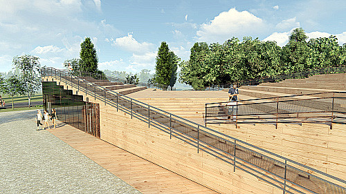 Здание будет иметь деревянный каркас, стены выполнят из экологичных материалов. На крыше установят деревянный настил, который сможет служить в качестве амфитеатра.