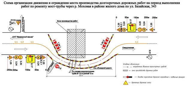 В связи с ремонтом моста-трубы через реку Моховая с 31 мая будет временно изменена схема движения на улице Базайской в районе здания №343. Проезд транспорта организуют по временной объездной дороге.
