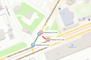 Также ограничено движение транспорта по проезду с западной стороны здания №20 на проспекте имени газеты "Красноярский рабочий". На этом участке установят временные дорожные знаки "Движение запрещено".
