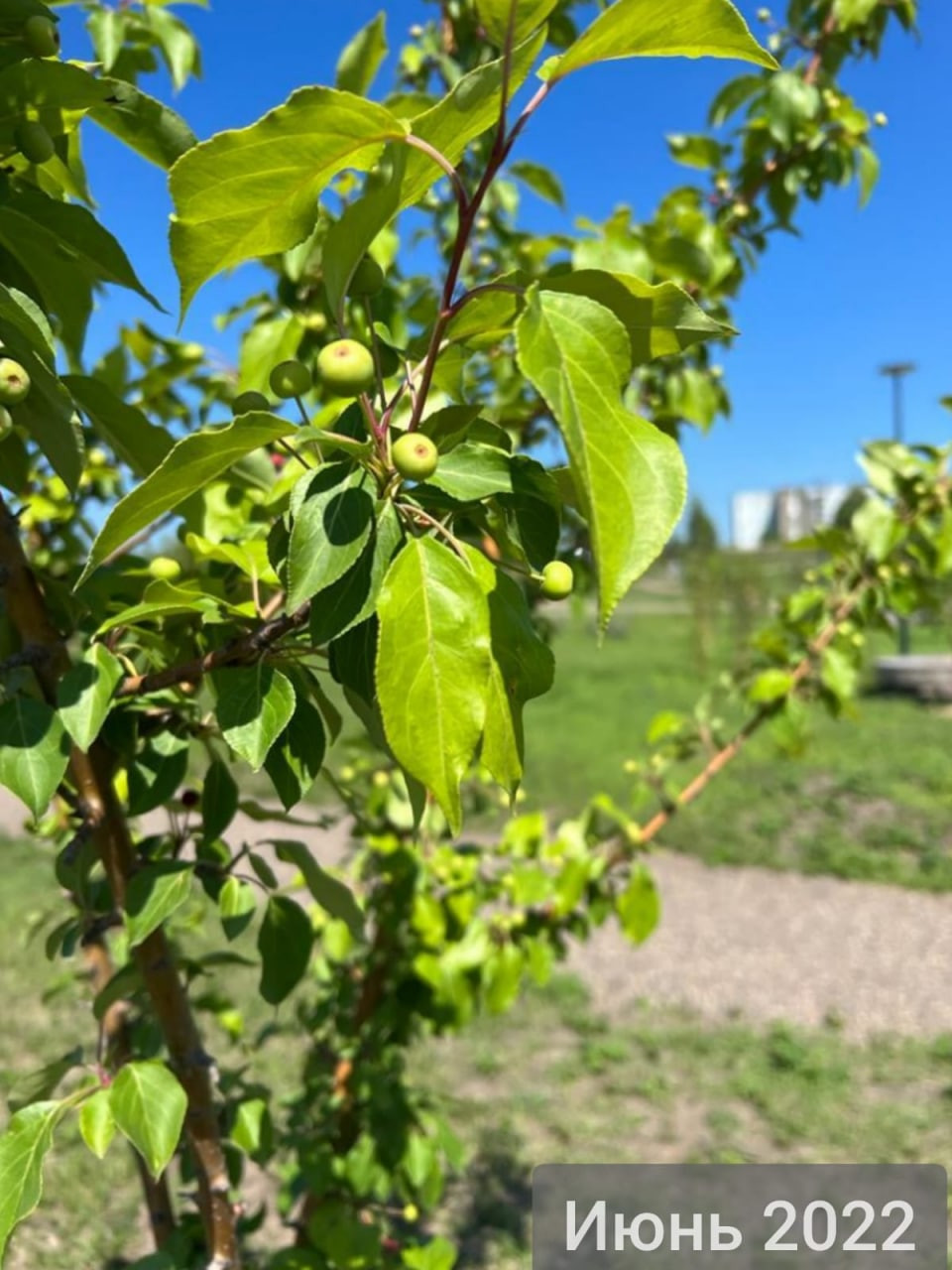 Фотографиями плодов поделились местные жители. Деревья высадили 2 года назад, когда началось благоустройство общественного пространства.