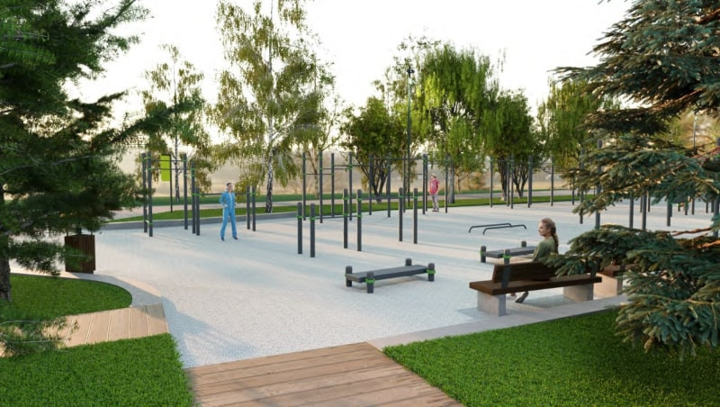 На аллее появятся павильон проката и площадки для игры в настольный теннис, бадминтон, петанк и городки. Рядом оборудуют места для отдыха и велопарковки. Не забудут и об озеленении - минимум 60% территории будут занимать газоны. Также предусмотрены системы видеонаблюдения и освещения.