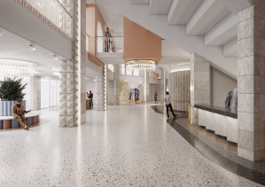В качестве отделки будут использованы архитектурный бетон и сталь. Лестницы украсит мозаика, а на входе посетителей встретит звёздное небо.