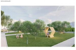 Сквер "Сибсталь" насытят архитектурными формами. Авторы проекта предлагают создать зону для детей с игровыми модулями, сцену с навесом и уникальную входную группу. Пространство вокруг исторических часов оформят оригинальными скамейками, а от остановки на территорию общественного пространства будет идти необычная лестница с пандусом. Предусмотрены место под фуд-траки, качели, спортивная зона, территория для отдыха с лежаками и площадка для выгула собак. Стилистика благоустройства будет соответствовать производственной и заводской тематике. Работа большая, поэтому её разобьют на два этапа. В следующем году реализуют первый.