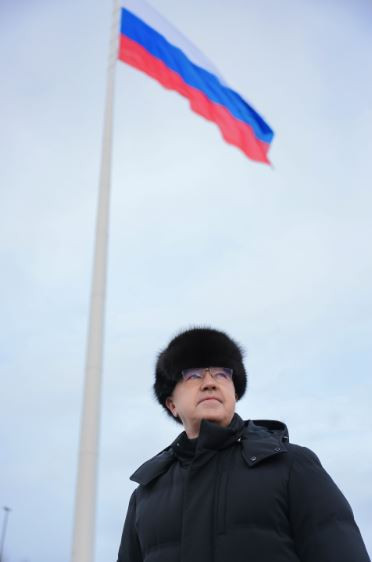 "Мы являемся участниками знакового и торжественного события. На стометровом флагштоке поднимается государственный флаг Российской Федерации. Именно под таким флагом, под триколором, были одержаны многие ратные и трудовые победы. Отныне этот флаг будет виден практически со всех точек города Красноярска. И он станет вдохновлять нас на новые свершения во имя нашей Родины, нашей любимой России!" - заявил губернатор Александр Усс.