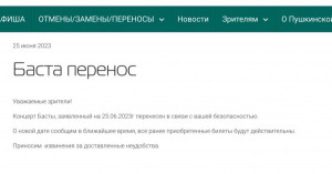 Также отменены выступления Басты в Иркутске (27 июня) и Хабаровске (29 июня).