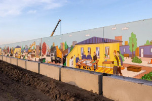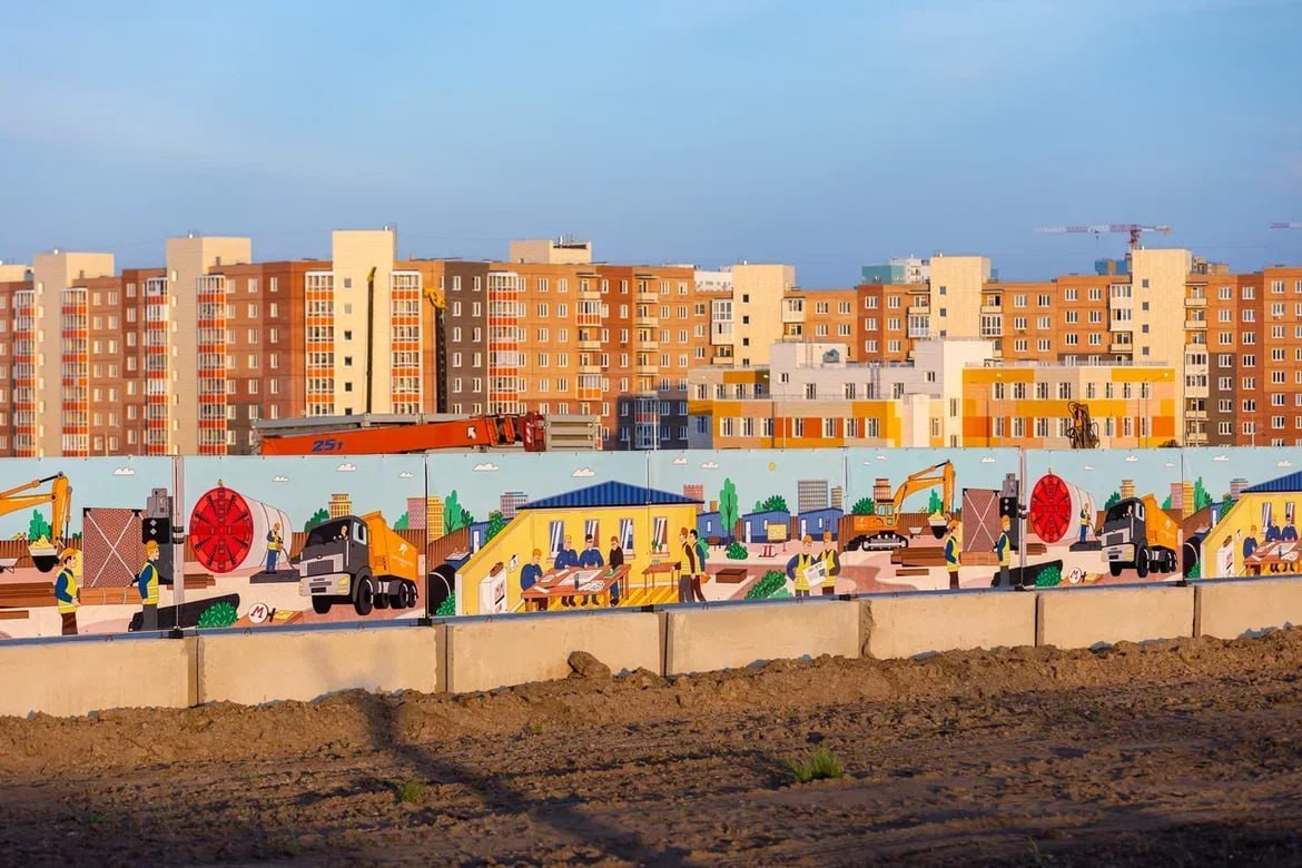 В Красноярске забор городка вахтовиков-метростроителей покрыли яркими баннерами
