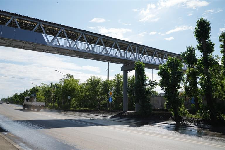 Надземный переход находится возле дома №327. Ранее здесь уже был мост, но 8 лет назад он разрушился в результате ДТП. Власти решили восстановить объект.