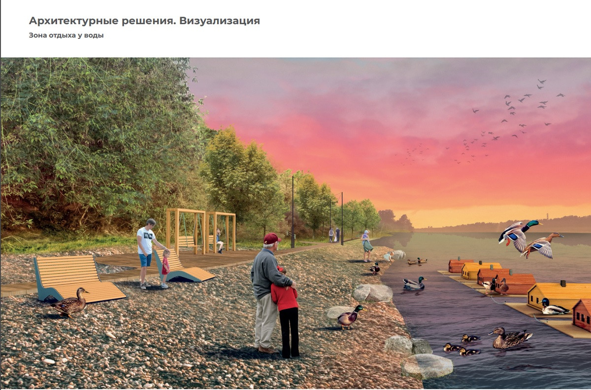 Возле озёр в микрорайоне Пашенный сделают видовые балконы с террасами и подсветкой. Появятся спуски к воде, шезлонги, тротуары, лавочки-лодки и интересная локация с качалками в виде утят.