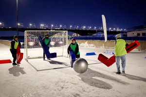 Нижний ярус набережной стал местом проведения турнира по "богатырскому" хоккею. Команды играли гигантскими клюшками и мячом. А возле "Капитанского клуба" красноярцы развлекались игрой в городки и бросанием валенка в мишени. Также организаторы подготовили домино с большими костяшками, дженгу и лабиринты.