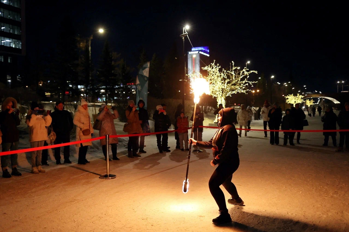 Открытие посетили более 2 000 человек. На правом берегу красноярцев встречали Дед Мороз и Снегурочка. Они зажгли вместе с горожанами 500 бенгальских огней. Одной из самых популярных точек Ярыгинской набережной в субботний вечер стал чум с хаски Риной и самоедом Ричи из парка "Роев ручей".