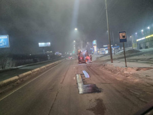 В Красноярске ремонтируют дороги даже в зимний период. Ночью специалисты устранили ямы в центре города и на Копыловском мосту.