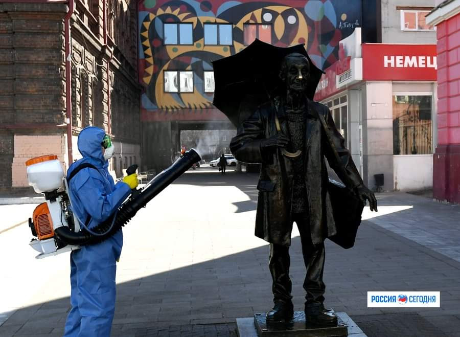 "В Красноярске дезинфицируют наиболее "трогательные" памятники, а также скамейки и другую уличную мебель в общественных местах. Этой работой занимаются сотрудники МП "Управление зелёного строительства". Скамьи, уличные диваны, урны и так называемые малые архитектурные формы обрабатывают антисептическим раствором с помощью разбрызгивателей", – рассказали в городской администрации.