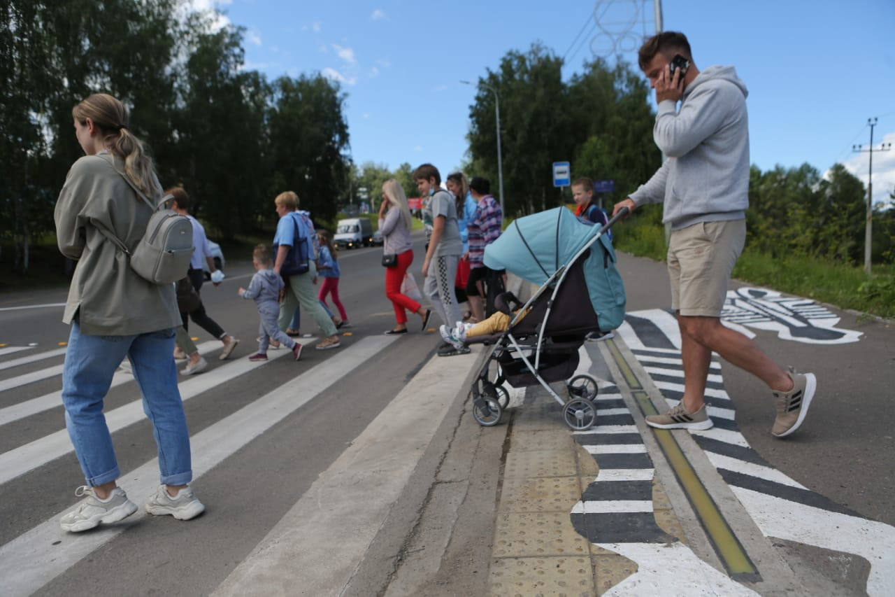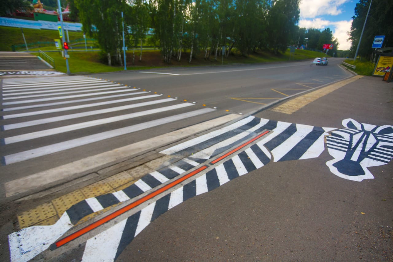 Около красноярского парка «Роев ручей» появился «лежачий» светофор в виде зебры