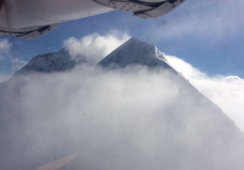 «Погодные условия были, конечно, не идеальными, но рассчитывать на лучшее мы уже не могли. Полёт был непростым, облачность сохранялась. Со всех сторон вершины были в облаках. Именно по этой причине увидеть место стоянки туристов сразу не удалось, пришлось зайти на второй круг», - рассказал он.