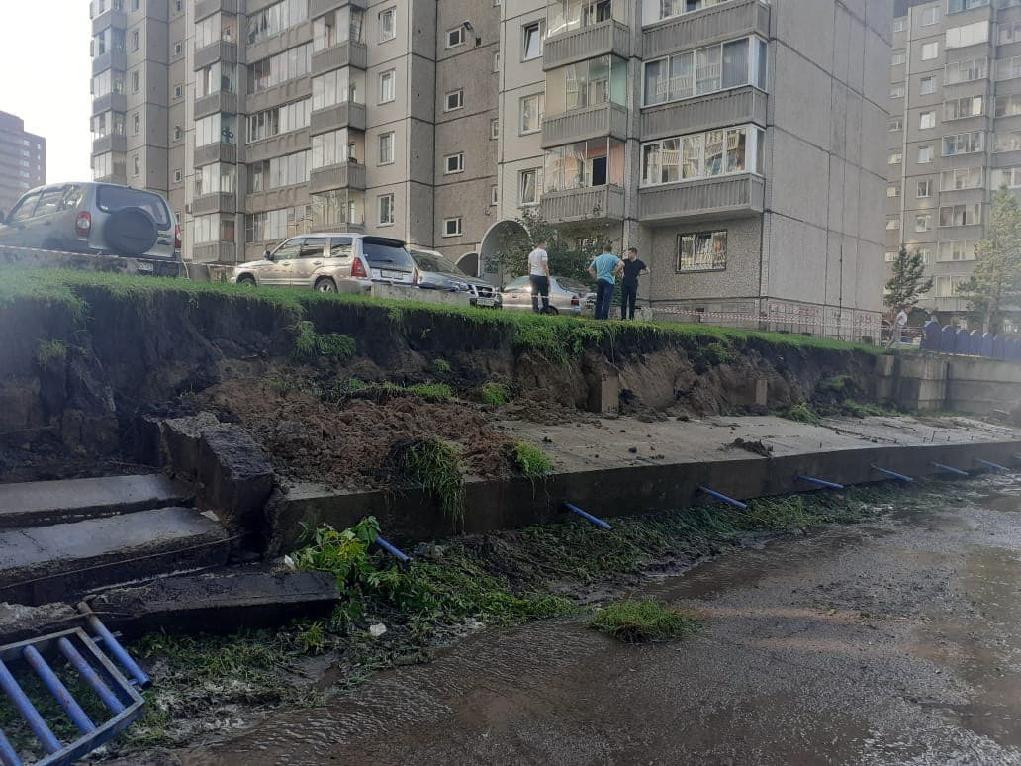 Накануне во время ливня в Октябрьском районе Красноярска обрушилась подпорная стена. По данному факту краевая прокуратура проводит проверку.