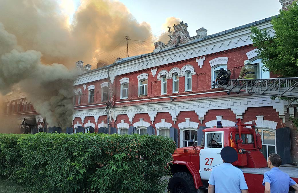 Вчера в городе в Канске почти на половину выгорело историческое здание на площади Коростелева, в котором находится типография.