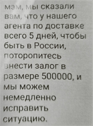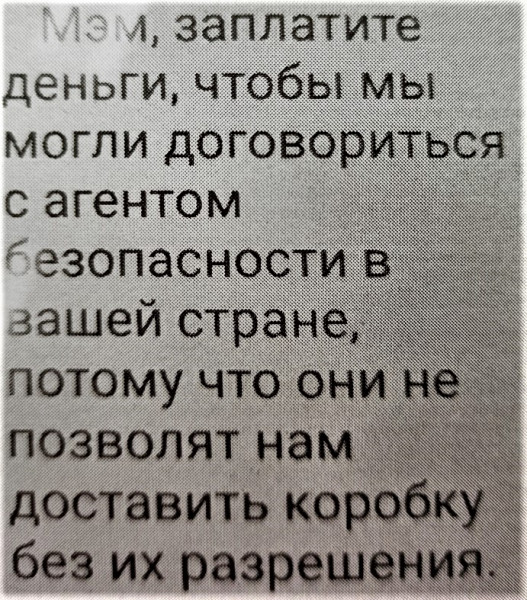 Ни о каких финансовых затратах речи не было, и потерпевшая согласилась. Спустя некоторое время с женщиной связались якобы представители транспортной компании. В электронном письме они сообщили, что нужно подтвердить почтовый адрес и заплатить 840 евро за безопасное следование посылки по России. Женщина перевела деньги, после чего от неё вновь потребовали определённую сумму. На этот раз нужно было оплатить передачу права собственности на посылку.