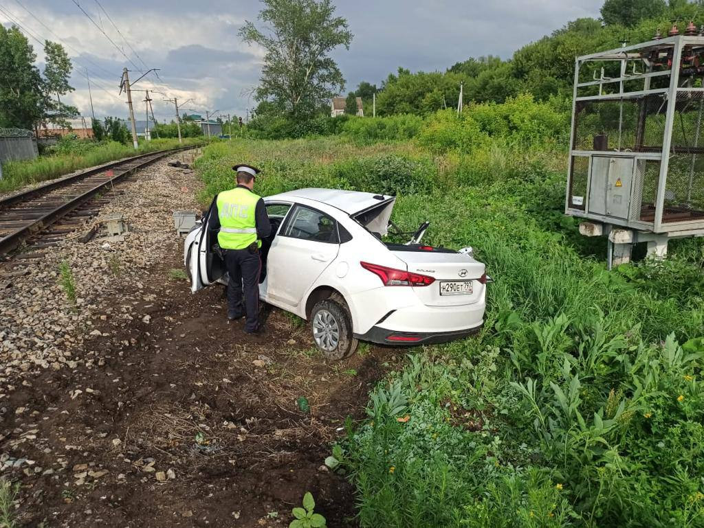 В Красноярске на ж/д переезде электричка сбила Hyundai Solaris, пострадал 1 человек