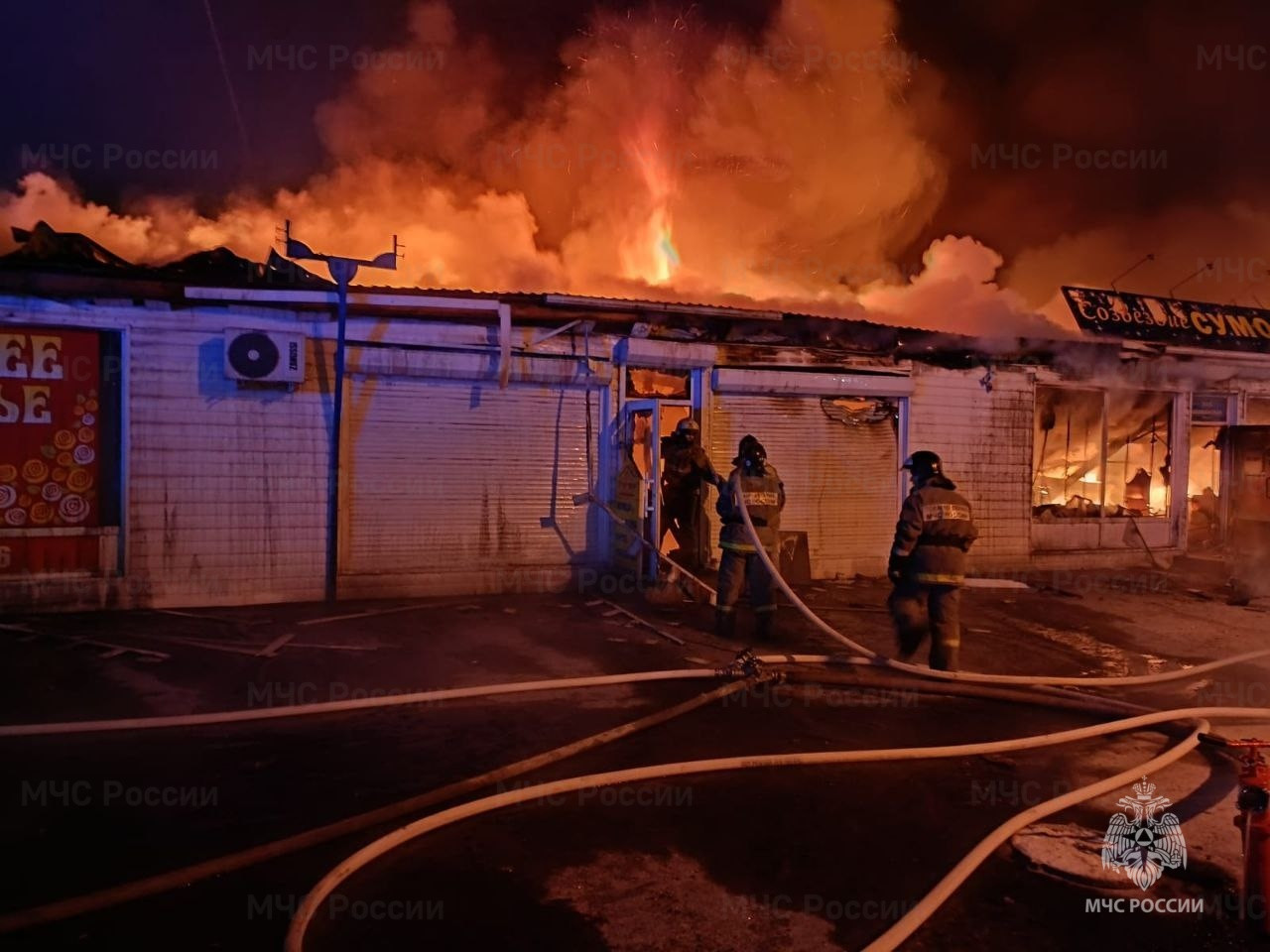 Сегодня в 20 часов 25 минут поступило сообщение о возгорании кровли торговых павильонов в Минусинске.