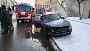 Сегодня утром в центре Красноярска столкнулись Nissan и пожарная машина. Травмы получили 4 человека.