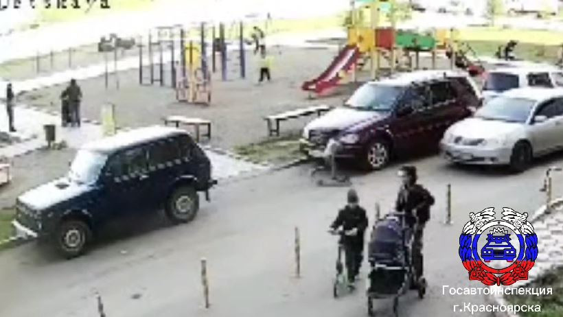 В Красноярске маленький мальчик на самокате попал под машину. Ребёнок гулял с бабушкой, но женщина не уследила за внуком.