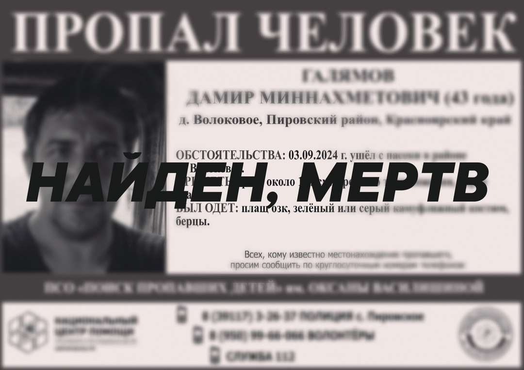 43-летний гражданин 3 сентября ушёл с пасеки в районе деревни Волоковое Пировского округа и исчез. Родные обратились за помощью в полицию. Начались поиски. Несколько дней назад ориентировка появилась в группе волонтёров.