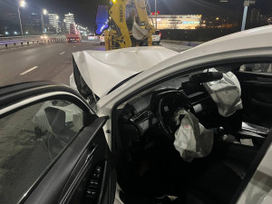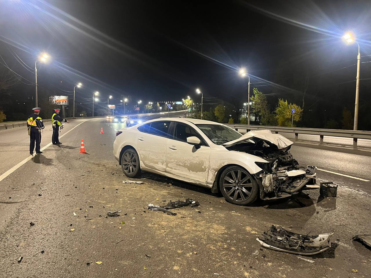Иномаркой управлял 57-летний водитель, не пристегнутый ремнём безопасности. Автомобиль двигался по мосту со стороны улицы Крайняя в сторону улицы Партизана Железняка.