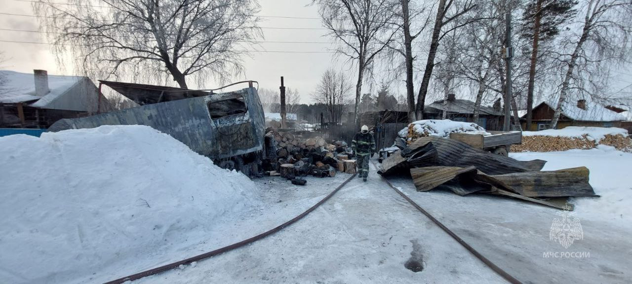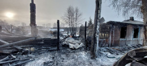 Огонь уничтожил жилой дом и надворовые постройки на общей площади 302 квадратных метра. Погиб мужчина, пострадала женщина, ей удалось спасти ребёнка. Предварительной причиной могло стать короткое замыкание электропроводки.