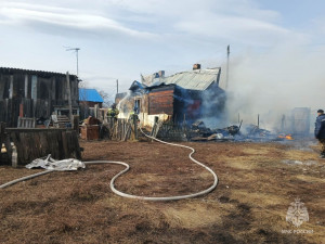 В селе Агинском Саянского района утром загорелись 1-этажный жилой дом и хозпостройки на общей площади 400 квадратных метров, а также трава на площади 0,05 гектара. Сотрудники МЧС России совместно с добровольцами ликвидировали возгорание. Его предварительная причина - неосторожное обращение с огнём.